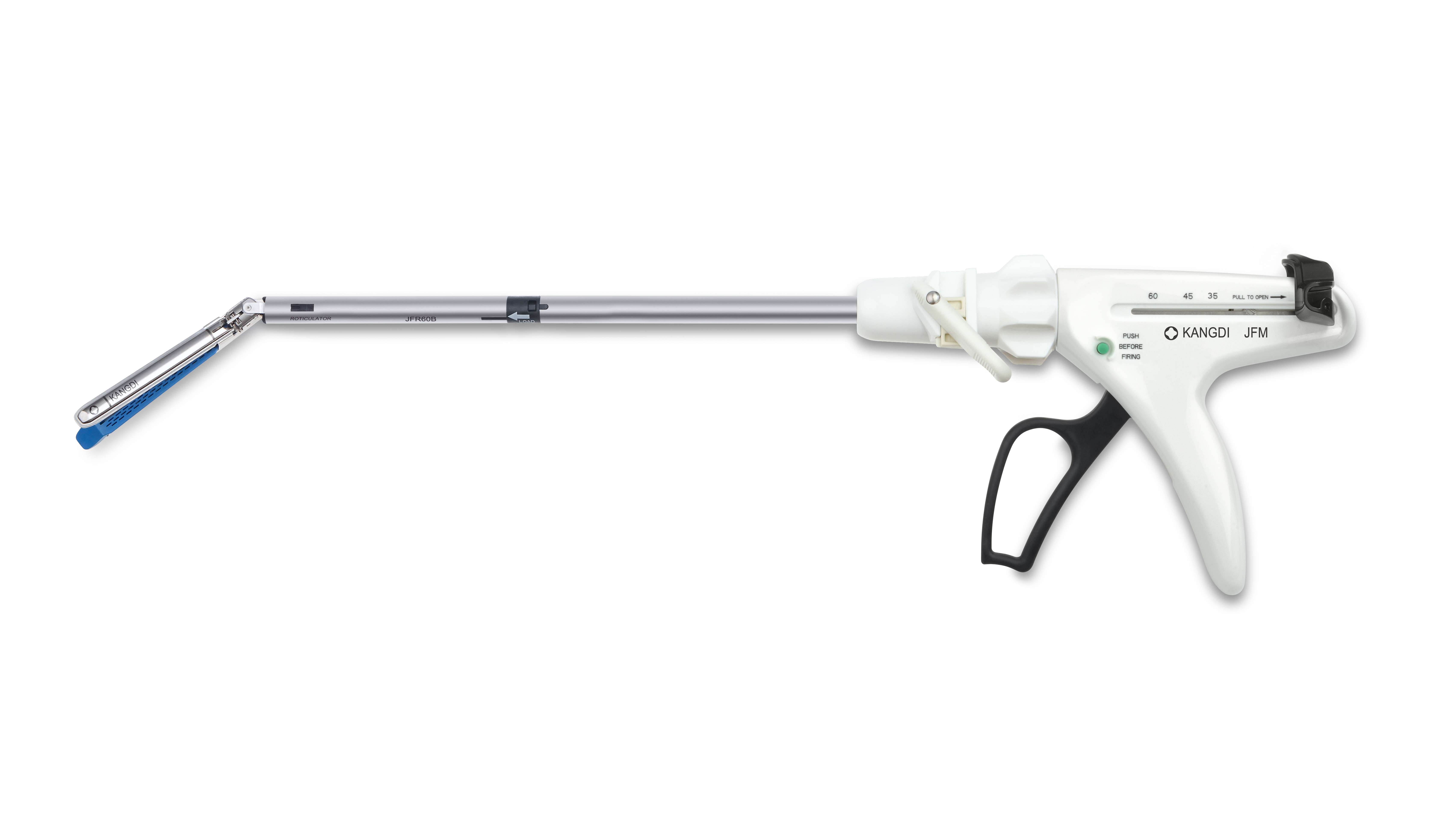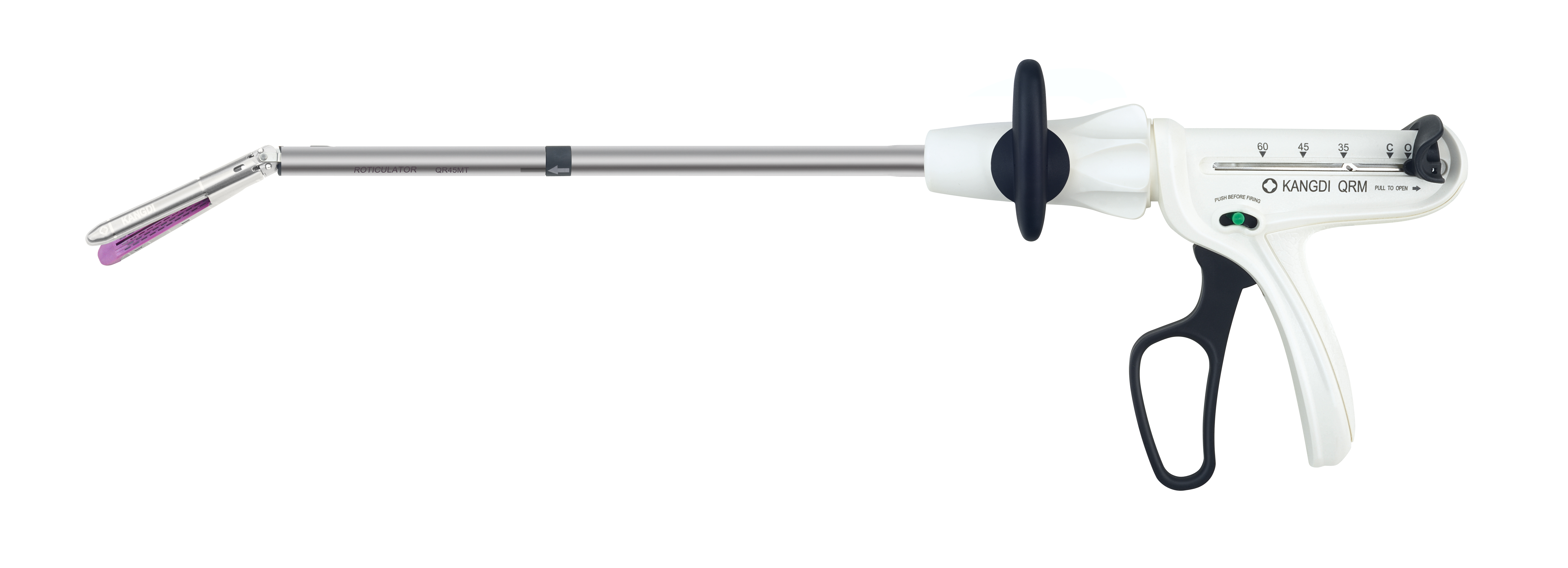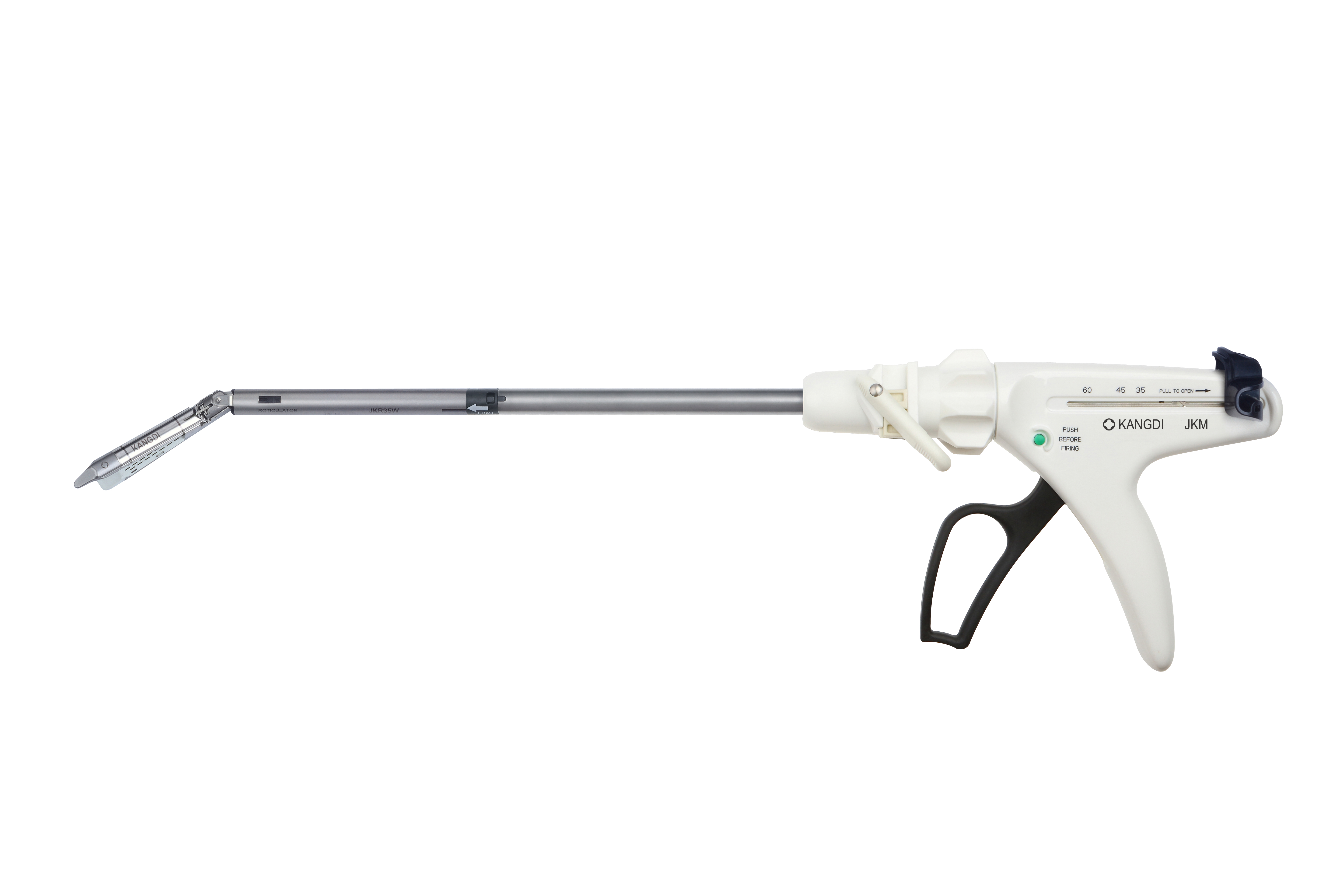 一次性使用腔鏡下切割吻合器及組件具有左右各三排交錯(cuò)排列的鈦釘,能夠同時(shí)縫合和切割組織。