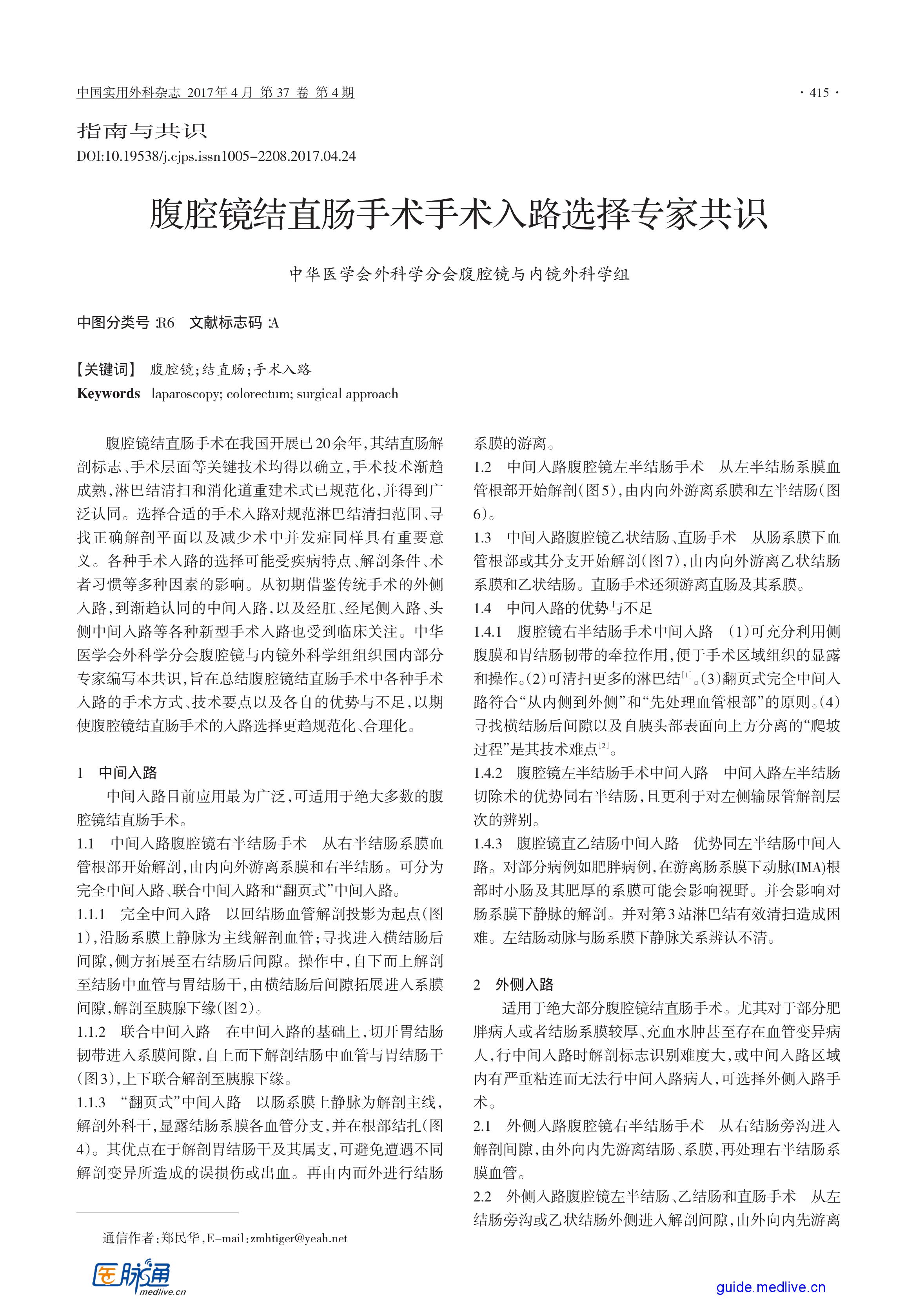腹腔鏡結(jié)直腸手術(shù)手術(shù)入路選擇專家共識