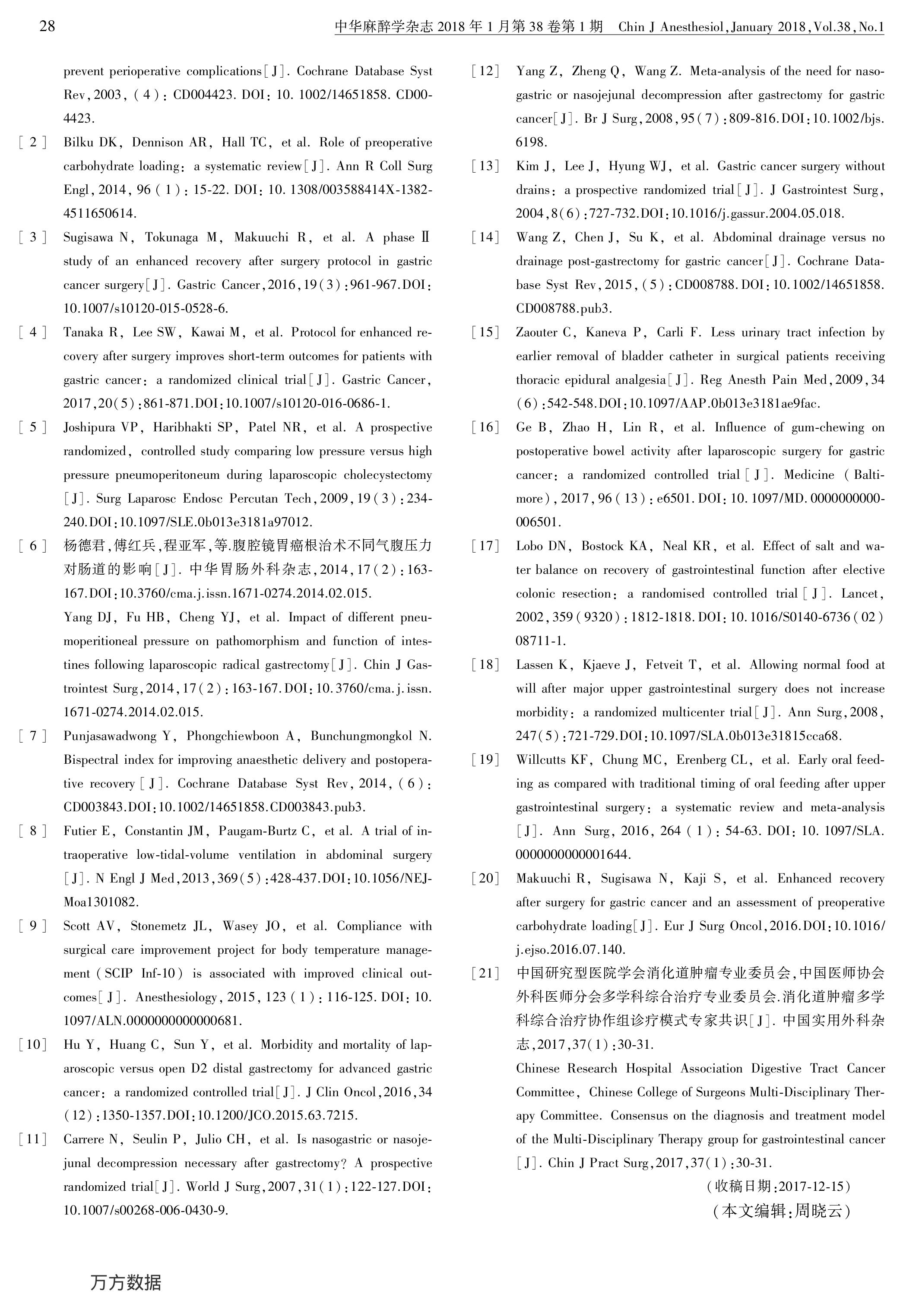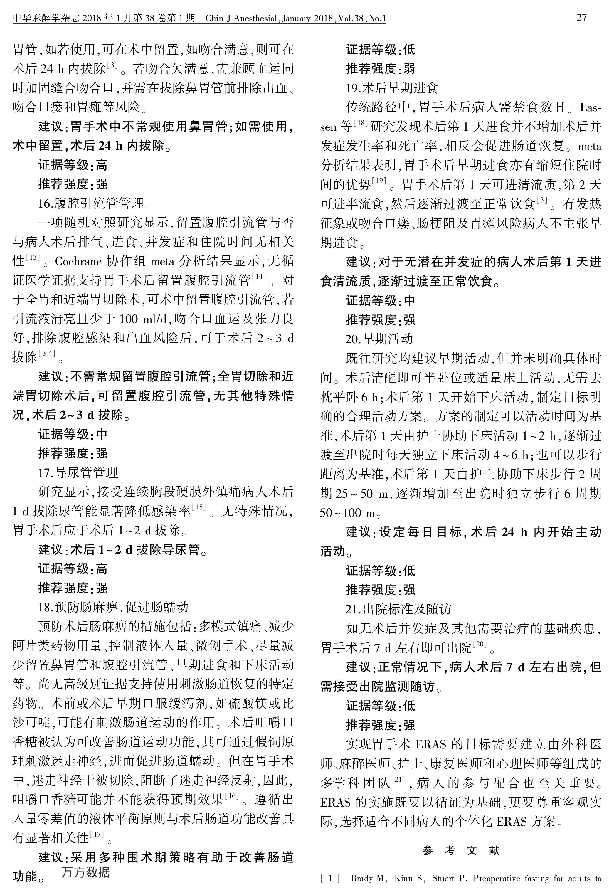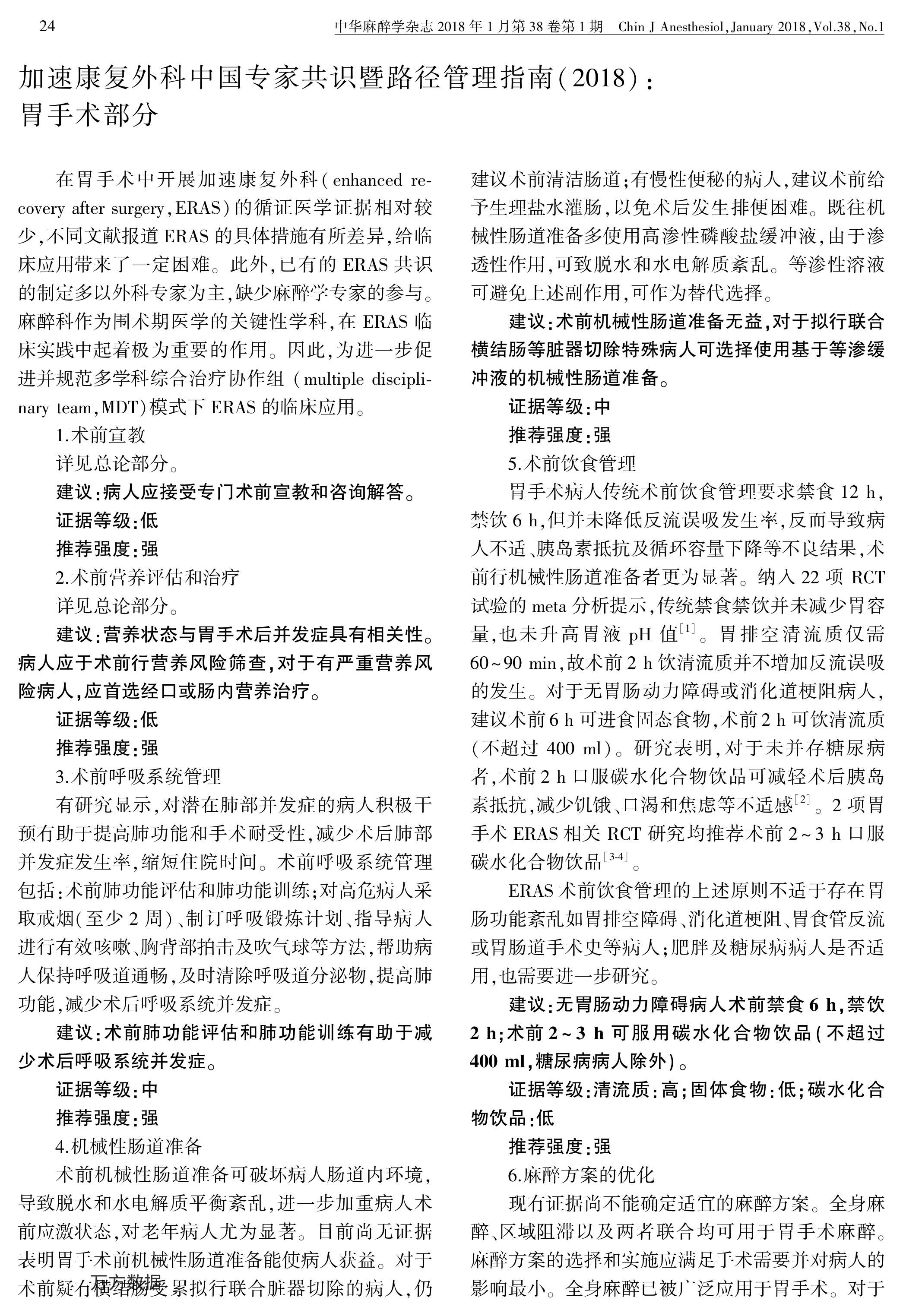加速康復(fù)外科中國(guó)專(zhuān)家共識(shí)暨路徑管理指南(2018):胃手術(shù)部分