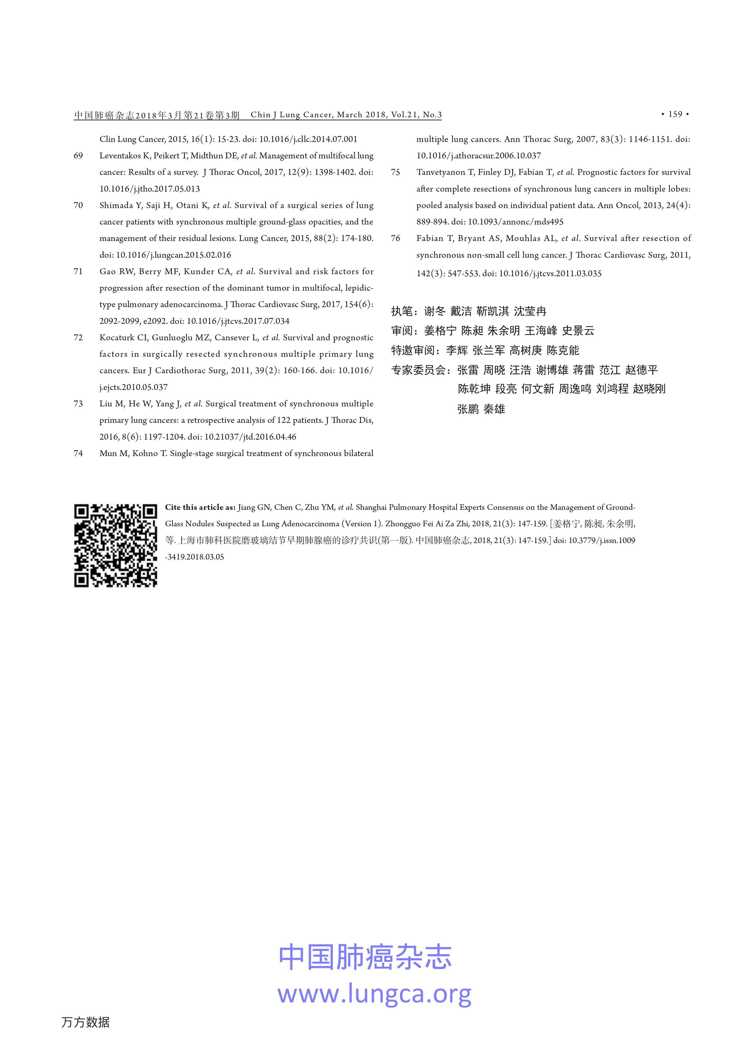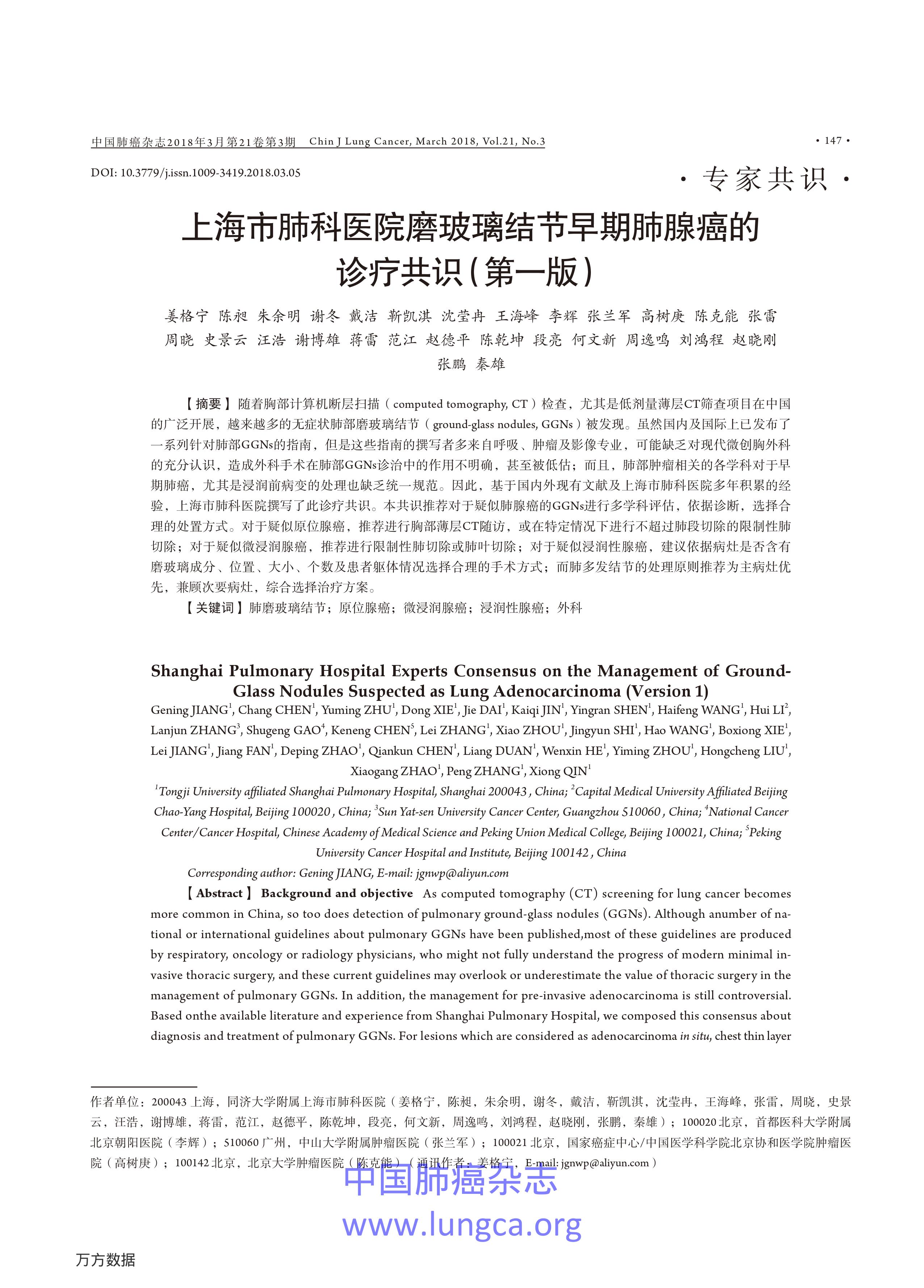 上海市肺科醫(yī)院磨玻璃結(jié)節(jié)早期肺腺癌的診療共識(第一版)