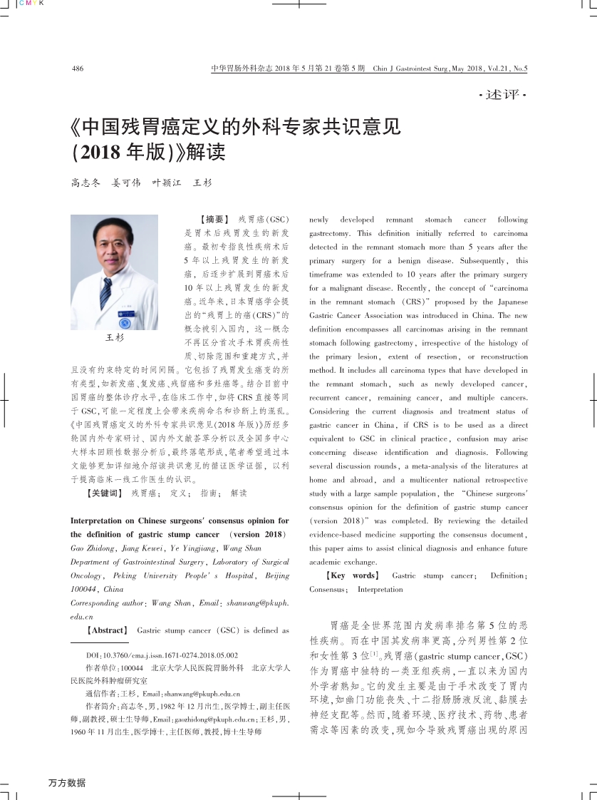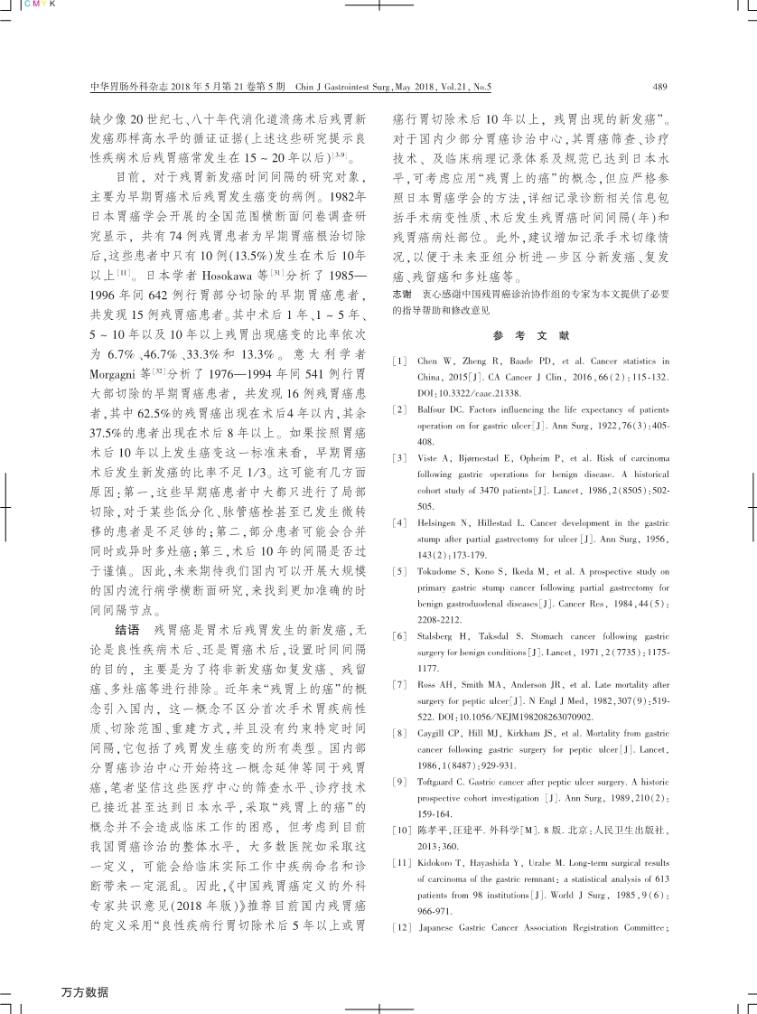《中國殘胃癌定義的外科專家共識意見 (2018 年版)》解讀
