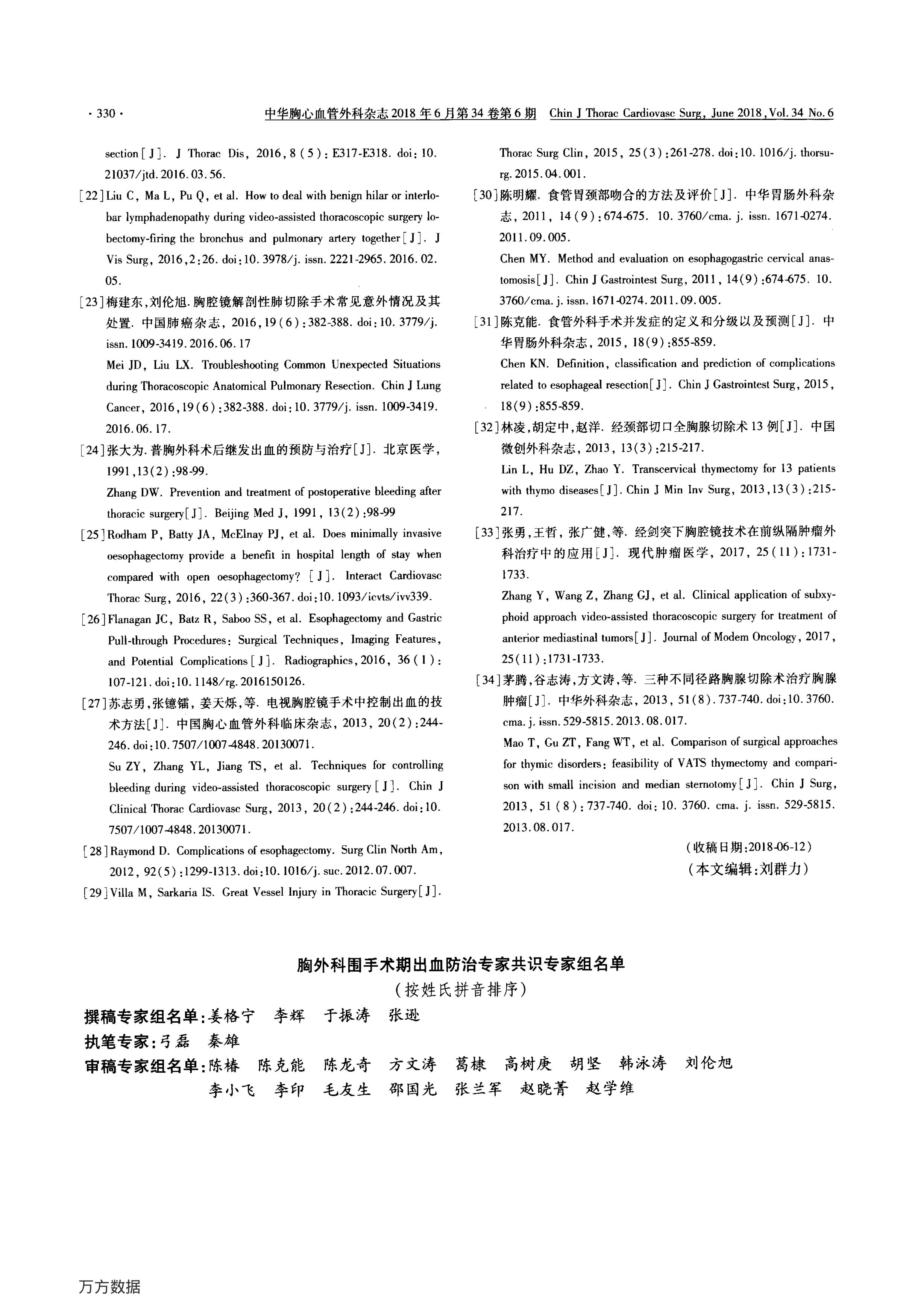 胸外科圍手術(shù)期出血防治專(zhuān)家共識(shí)