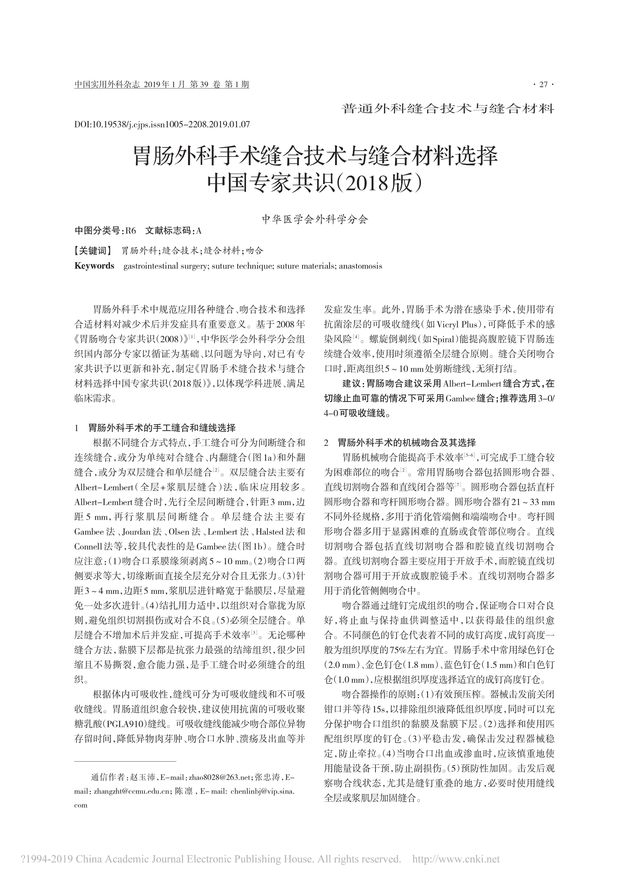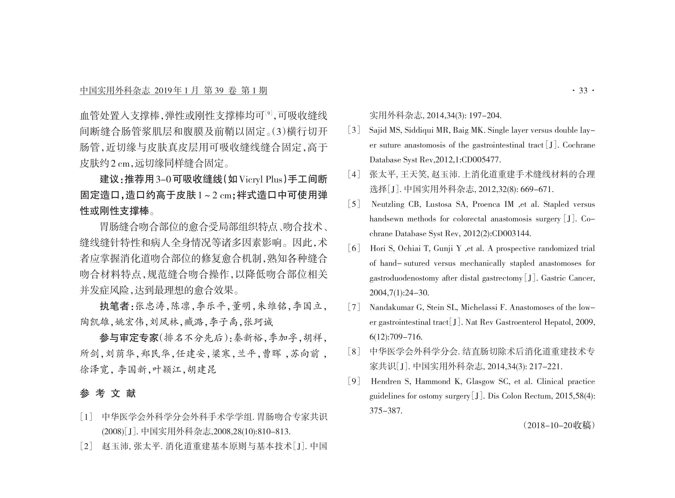 胃腸外科手術(shù)縫合技術(shù)與縫合材料選擇中國專家共識(shí)(2018 版)