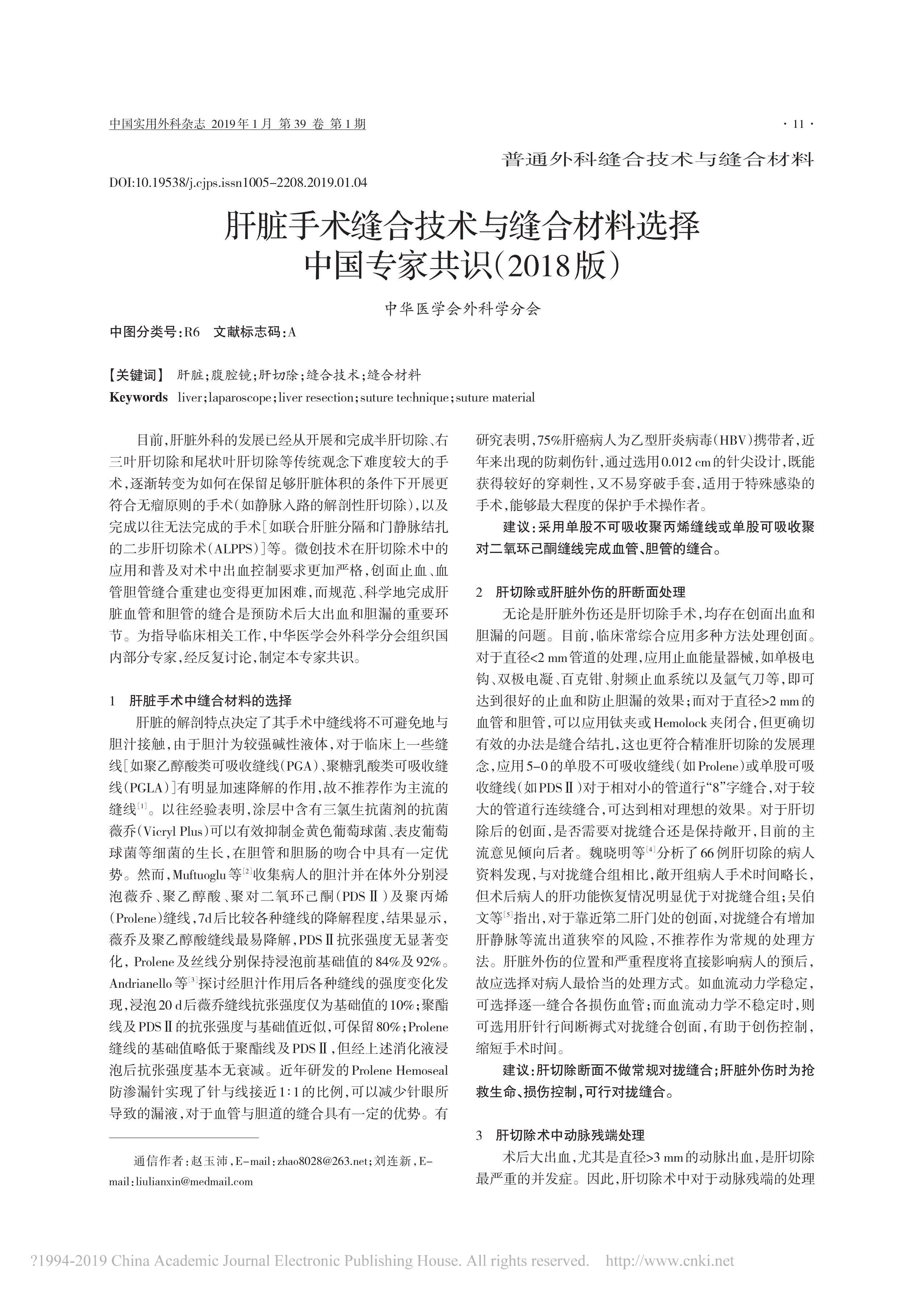 肝臟手術(shù)縫合技術(shù)與縫合材料選擇 中國專家共識(2018 版)