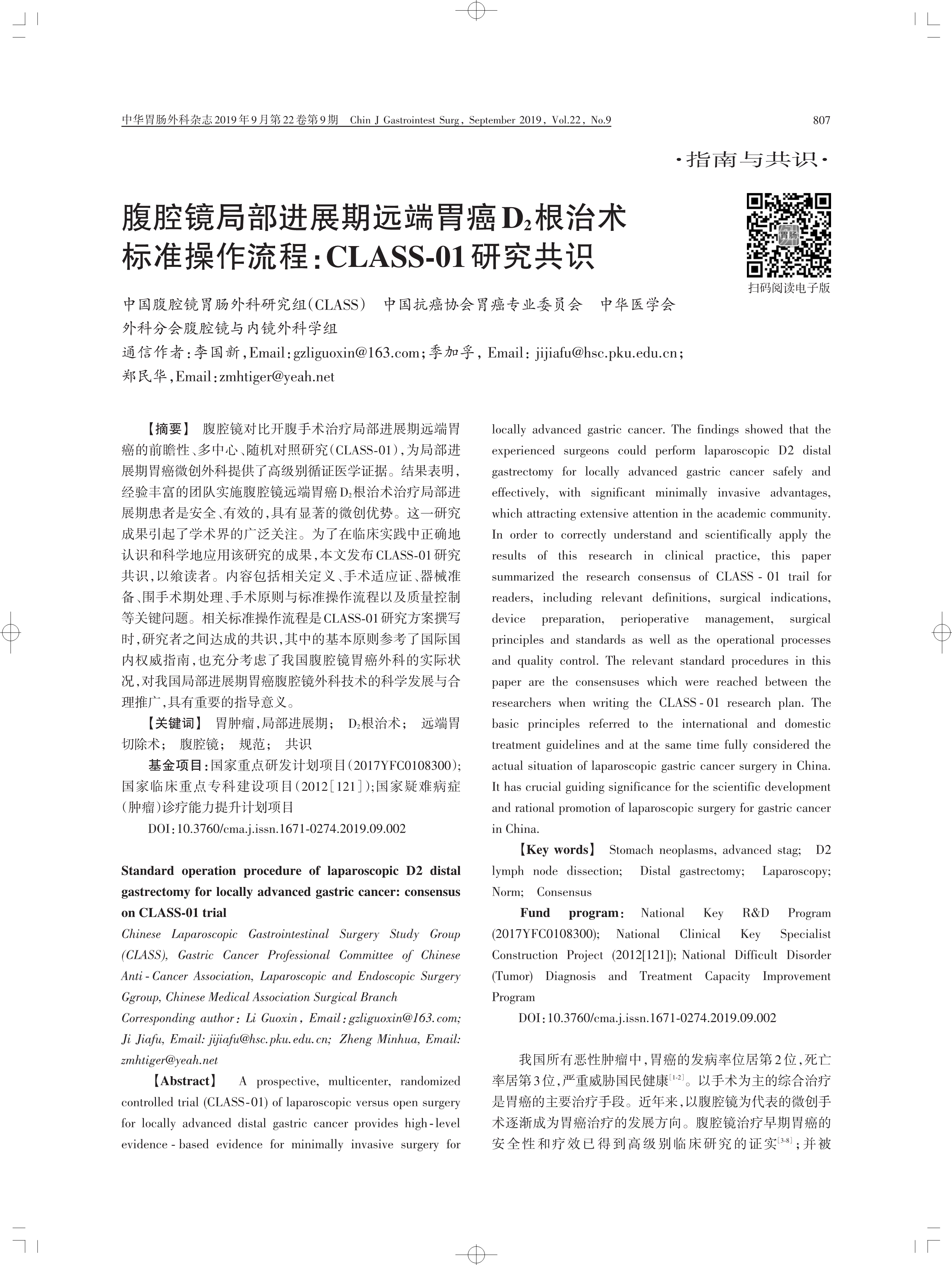 腹腔鏡局部進(jìn)展期遠(yuǎn)端胃癌D2根治術(shù)標(biāo)準(zhǔn)操作流程:CLASS?01 研究共識(shí)