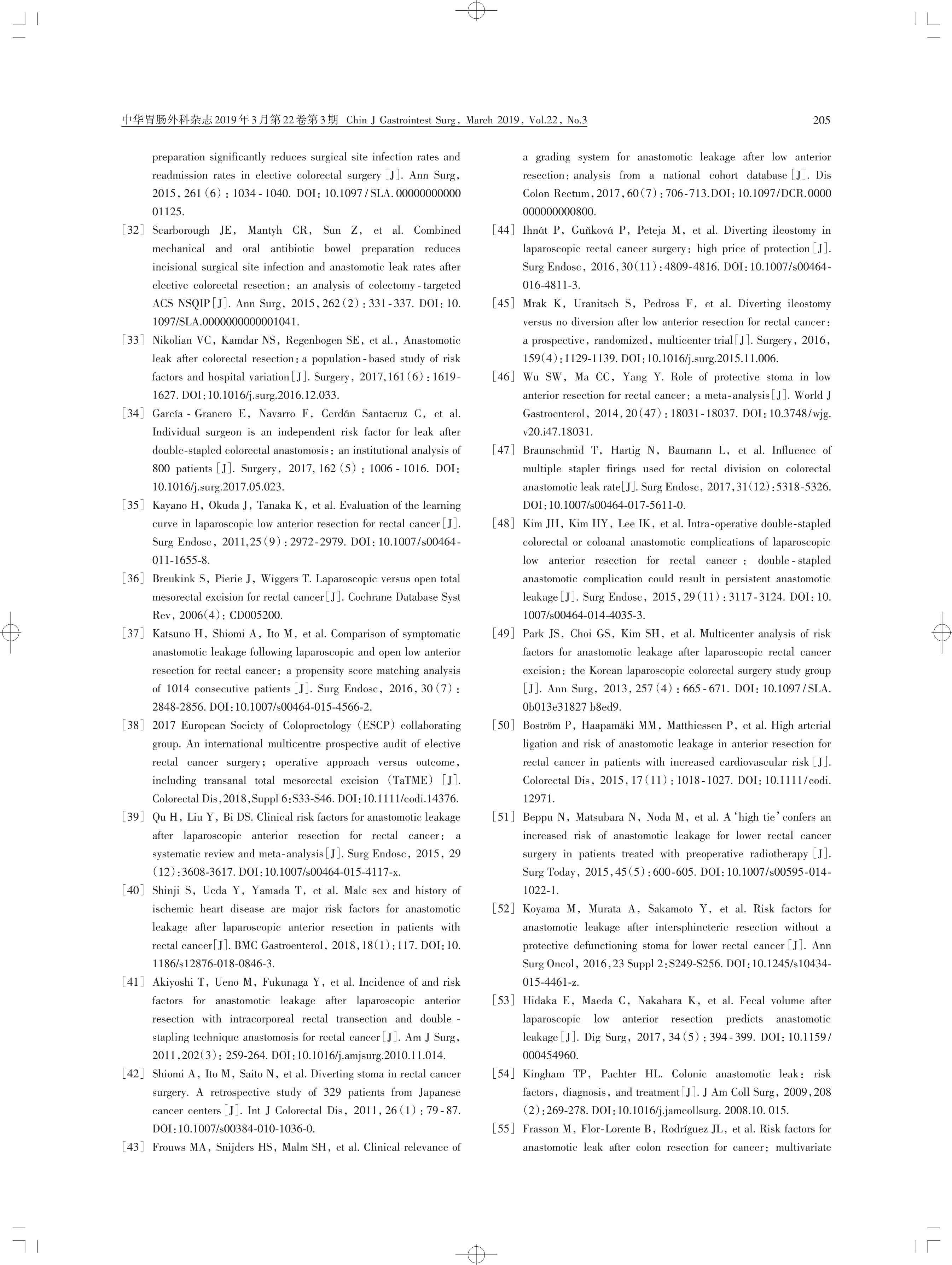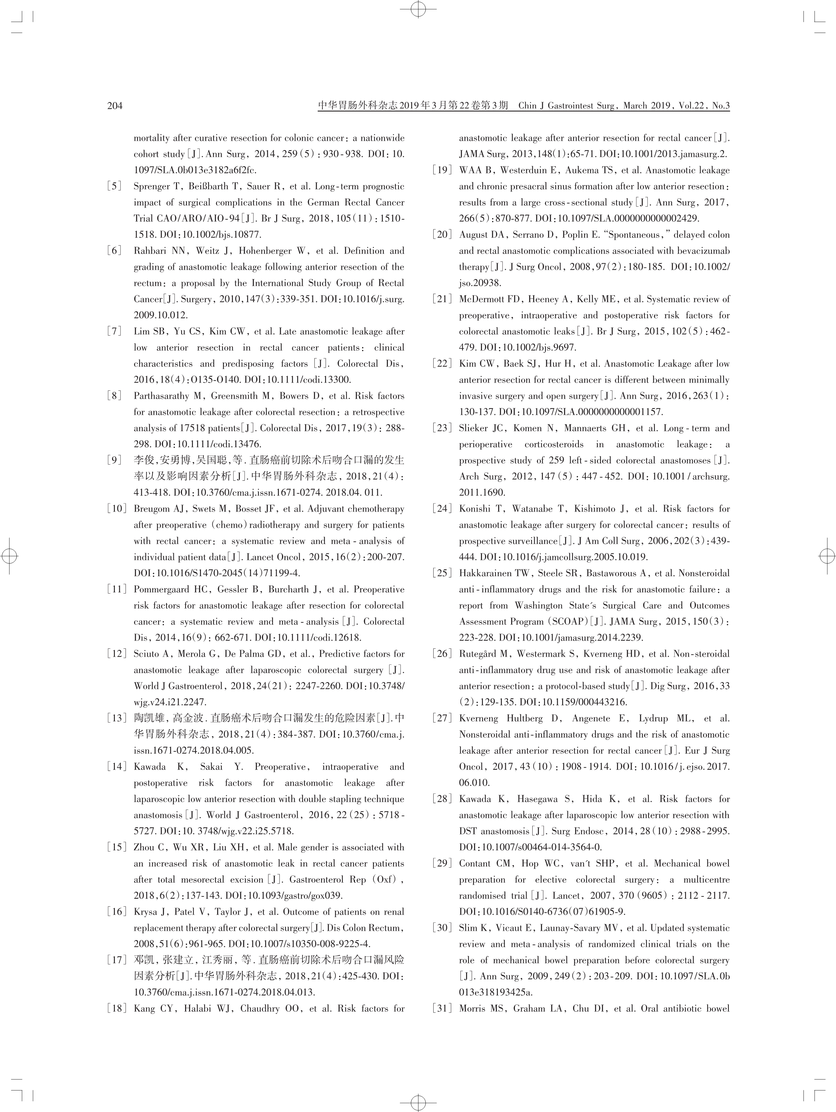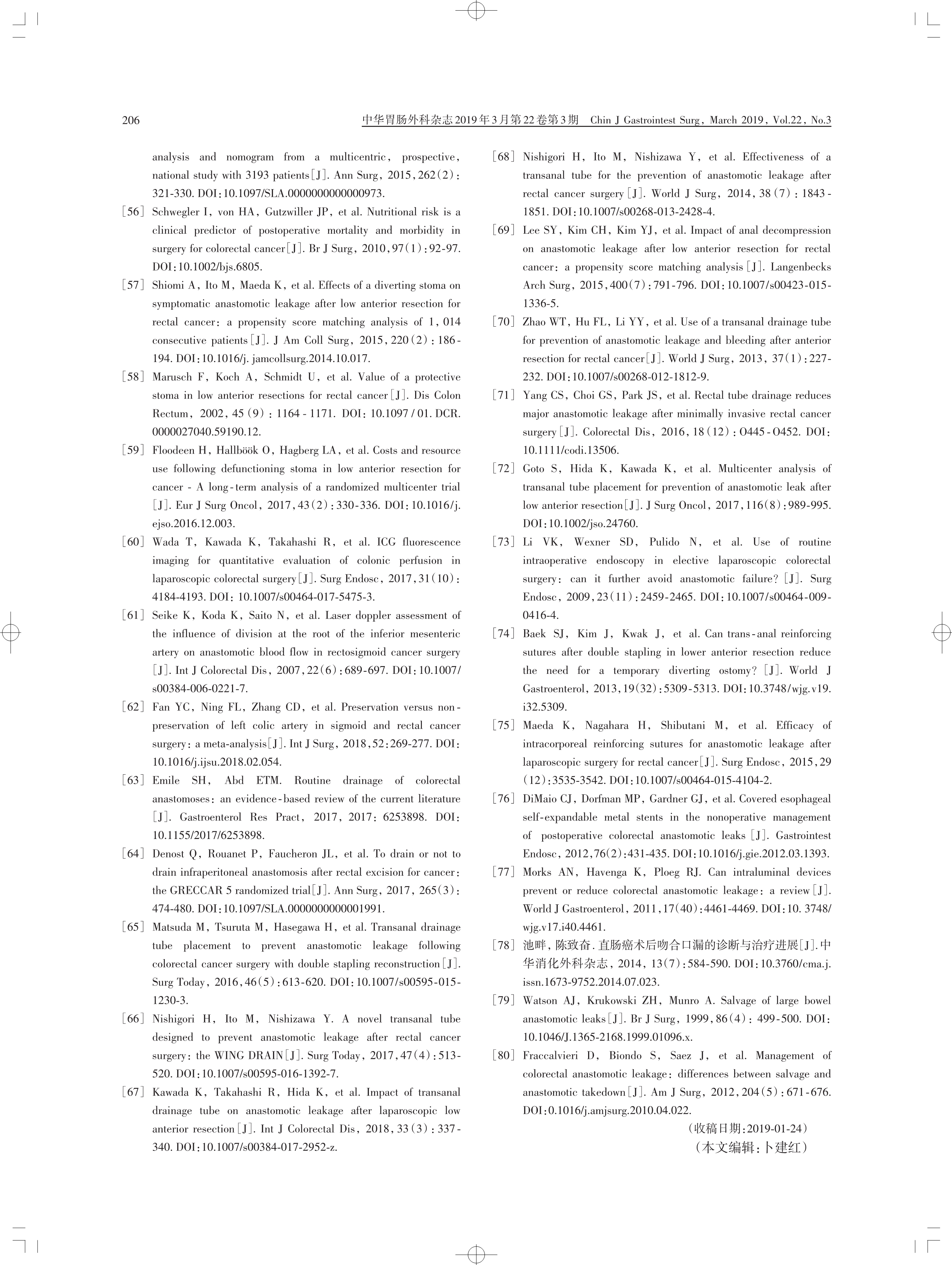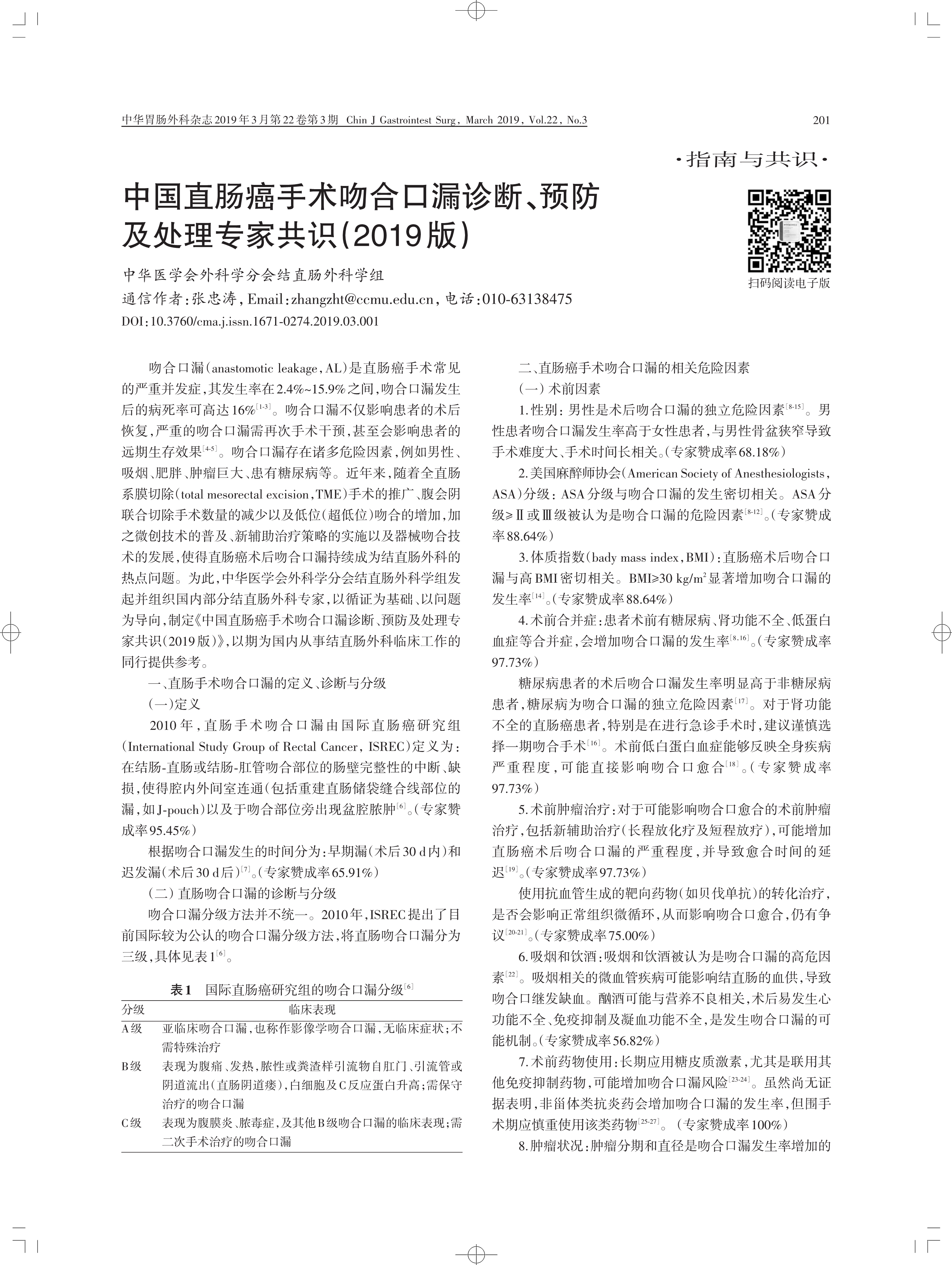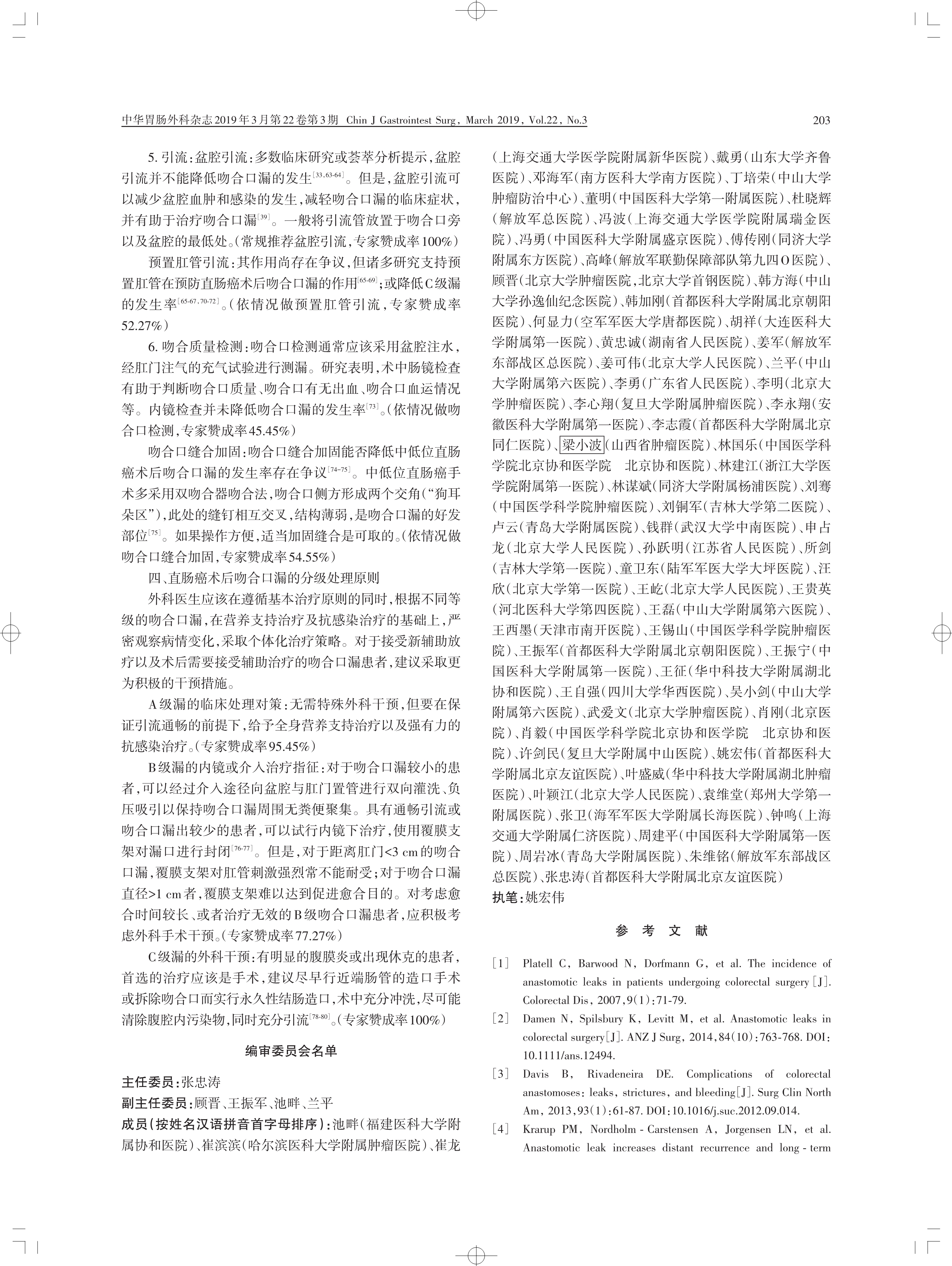 中國直腸癌手術(shù)吻合口漏診斷、預(yù)防 及處理專家共識(2019 版)