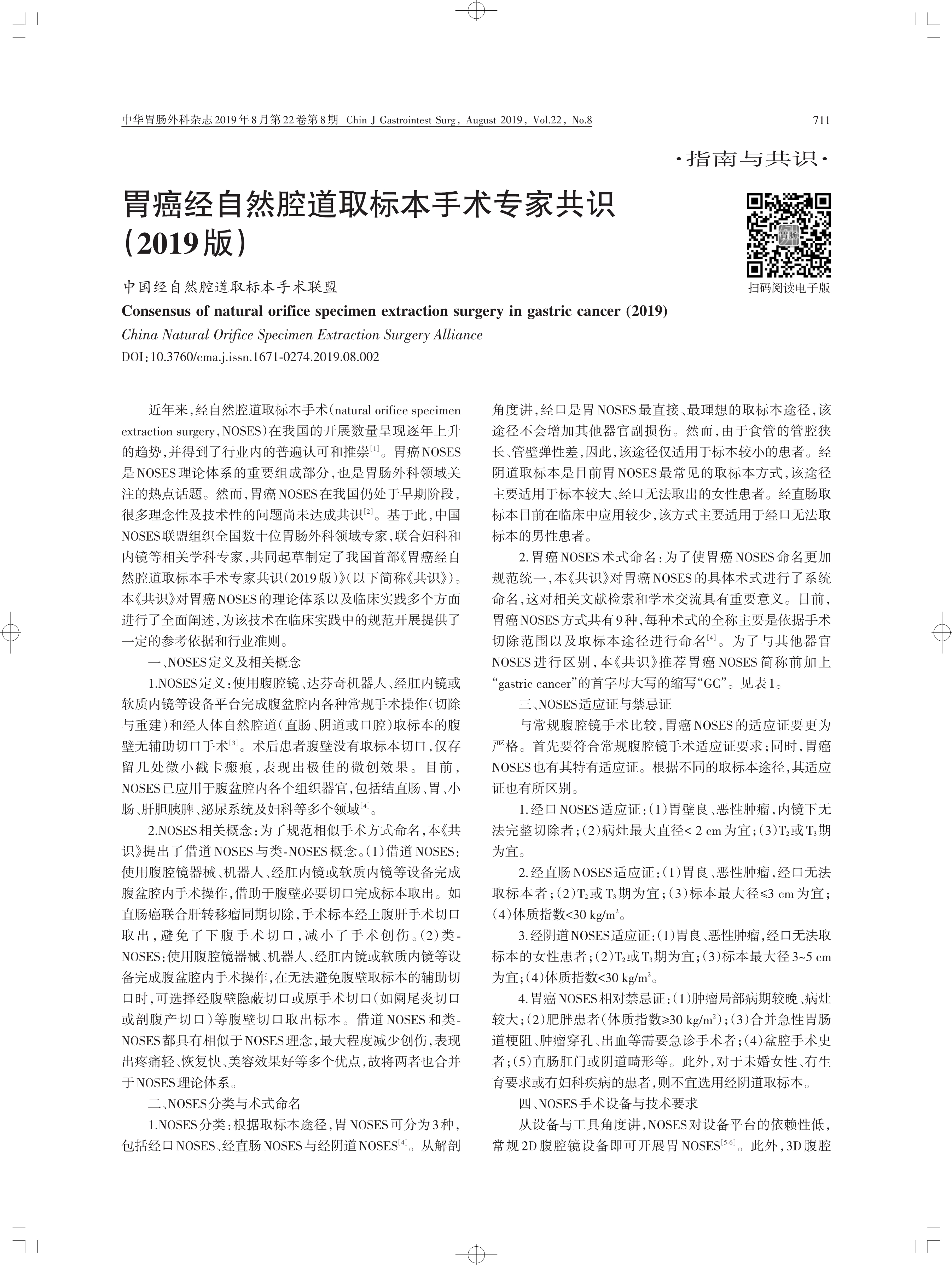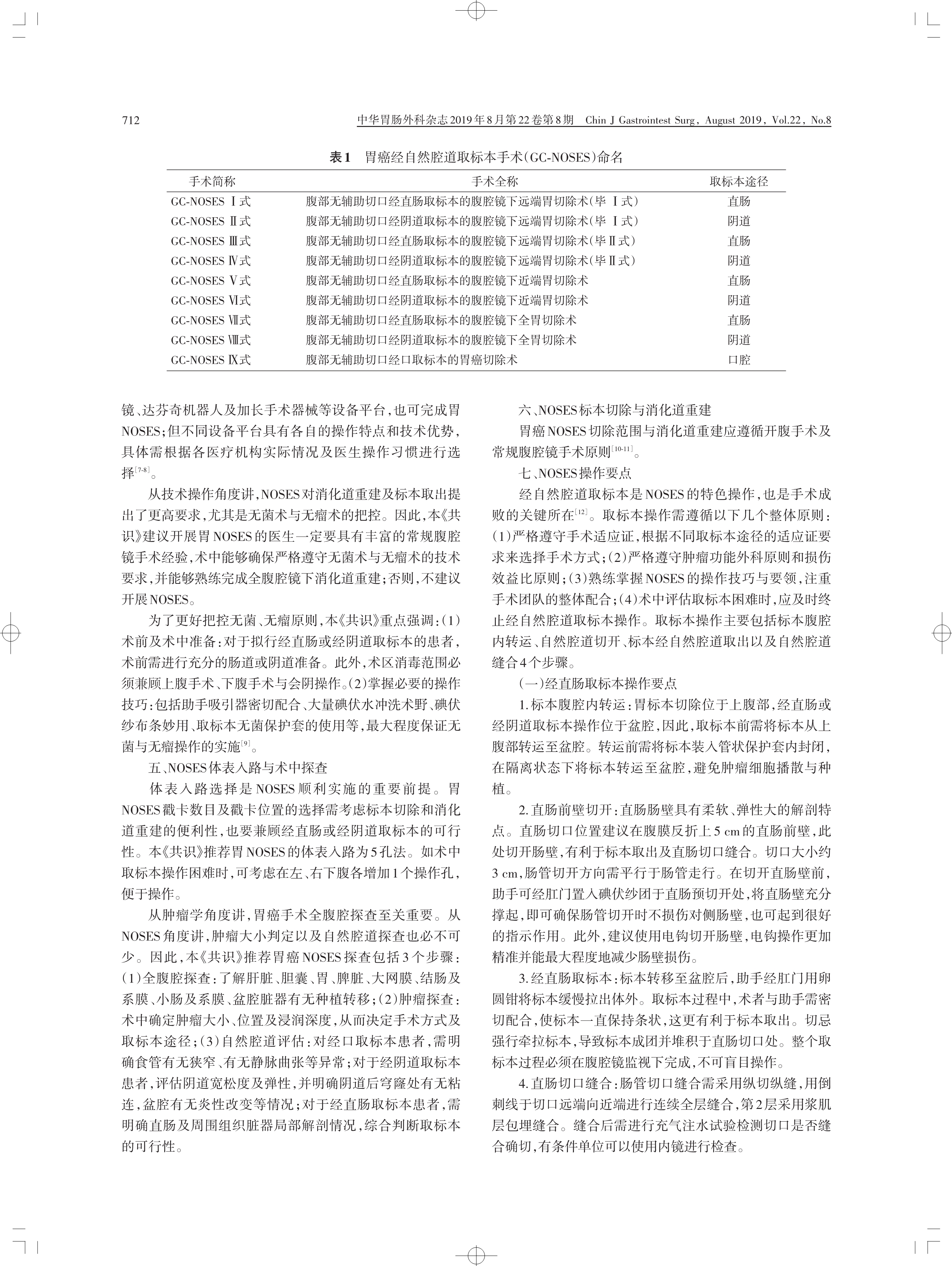 胃癌經(jīng)自然腔道取標本手術(shù)專家共識 (2019 版)