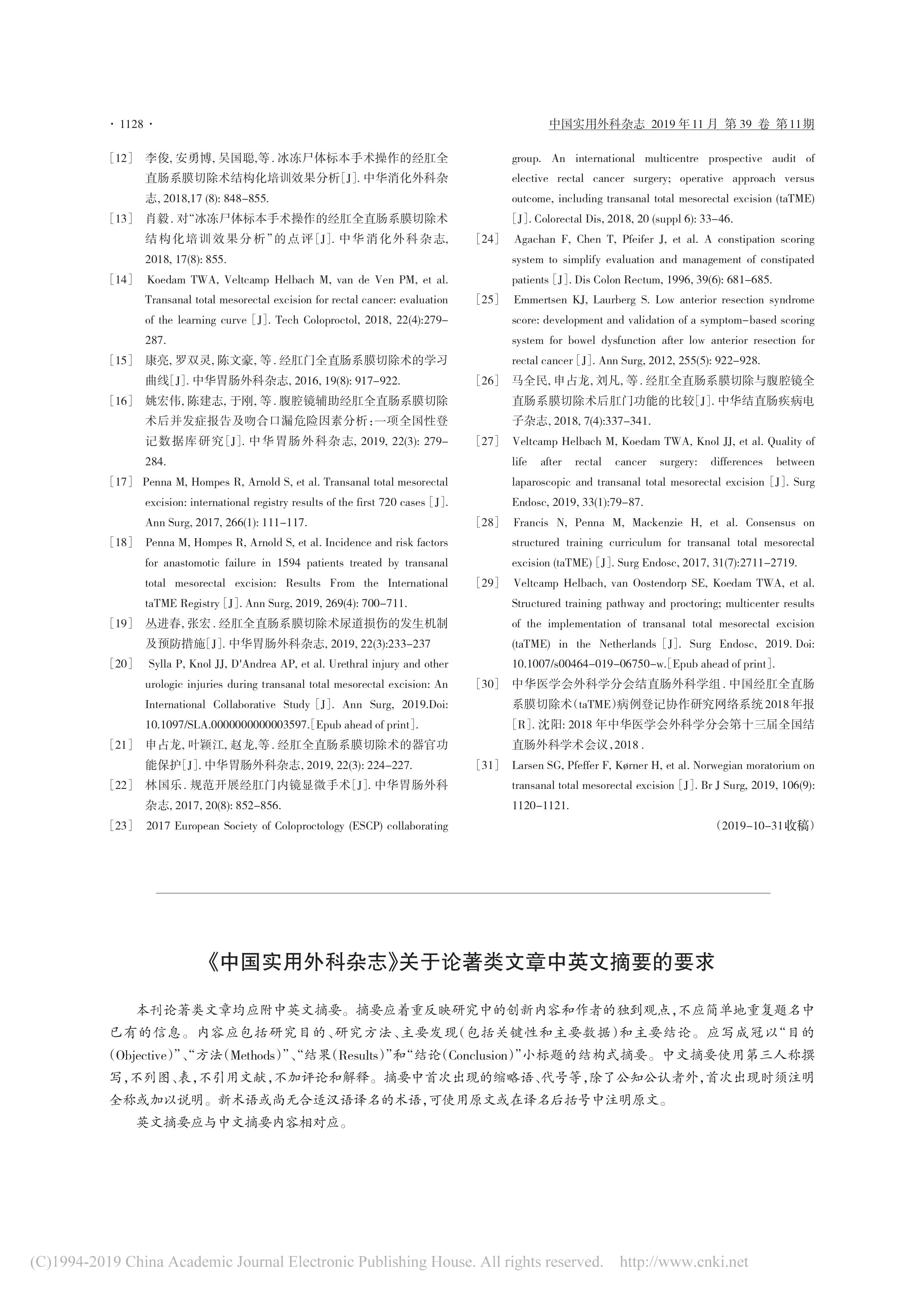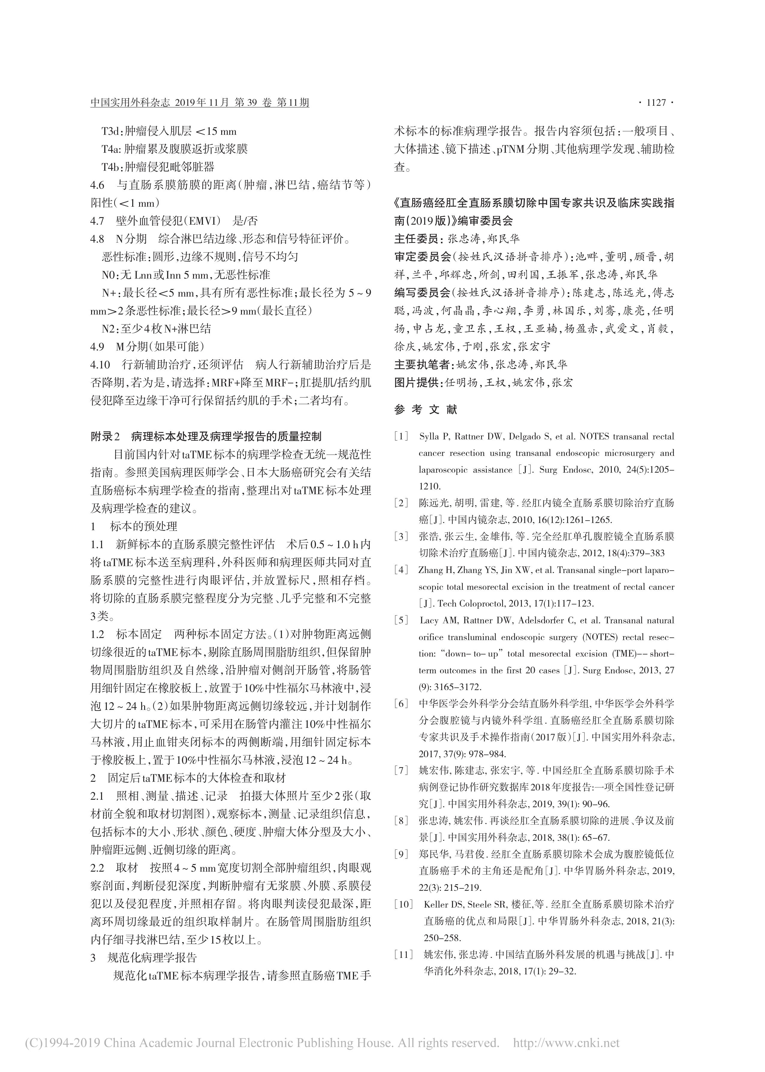直腸癌經(jīng)肛全直腸系膜切除中國專家共識及臨床實(shí)踐指南(2019版)