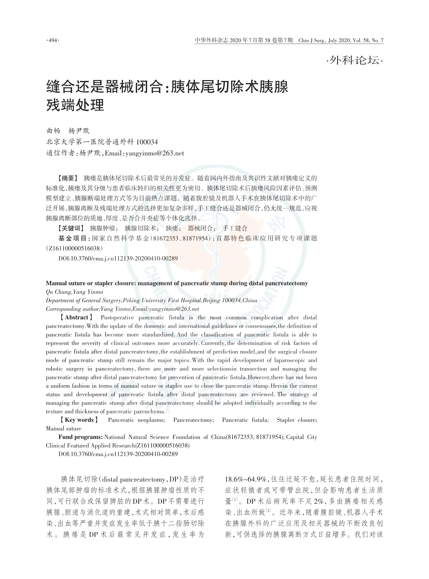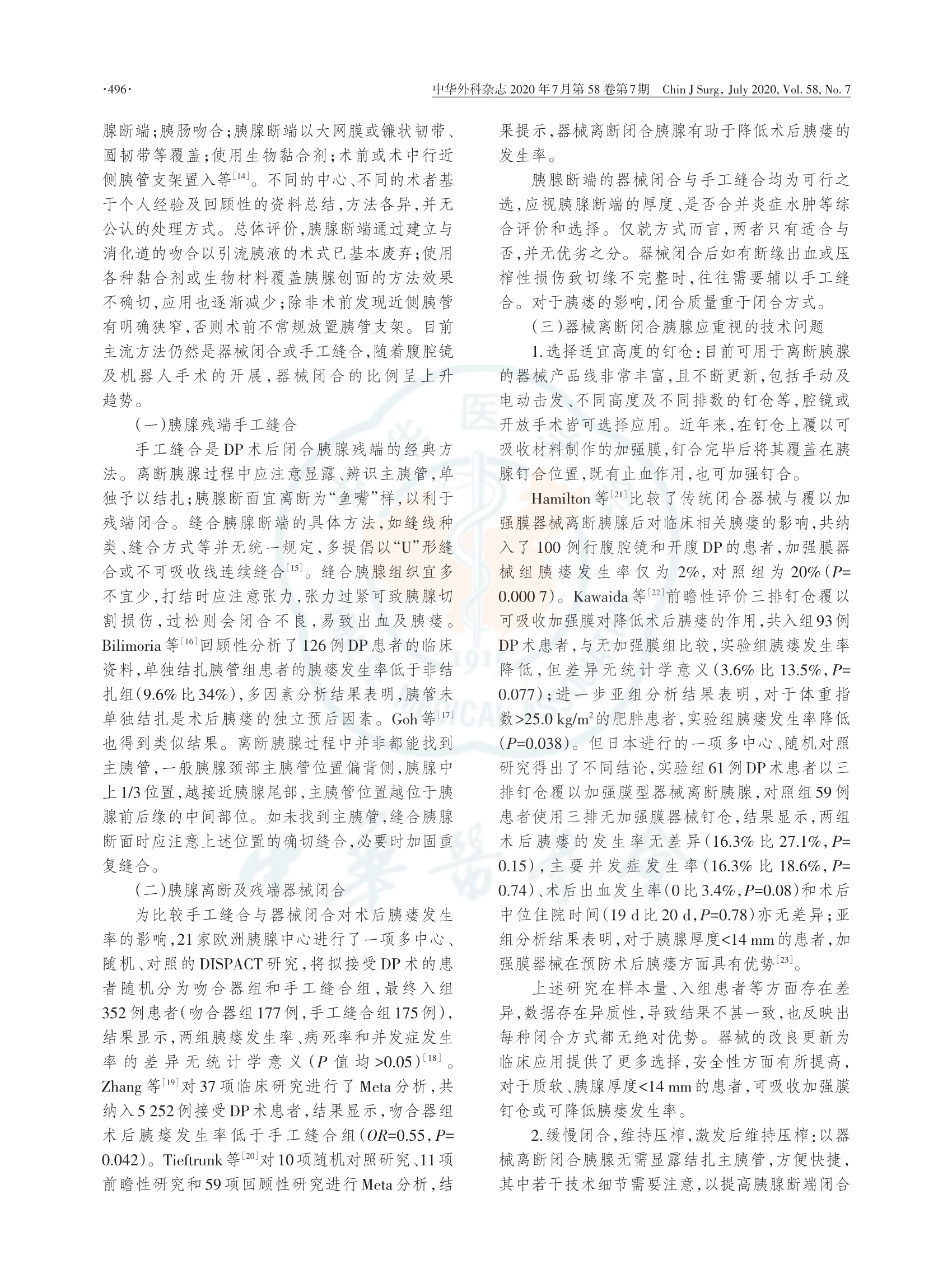縫合還是器械閉合:胰體尾切除術(shù)胰腺殘端處理