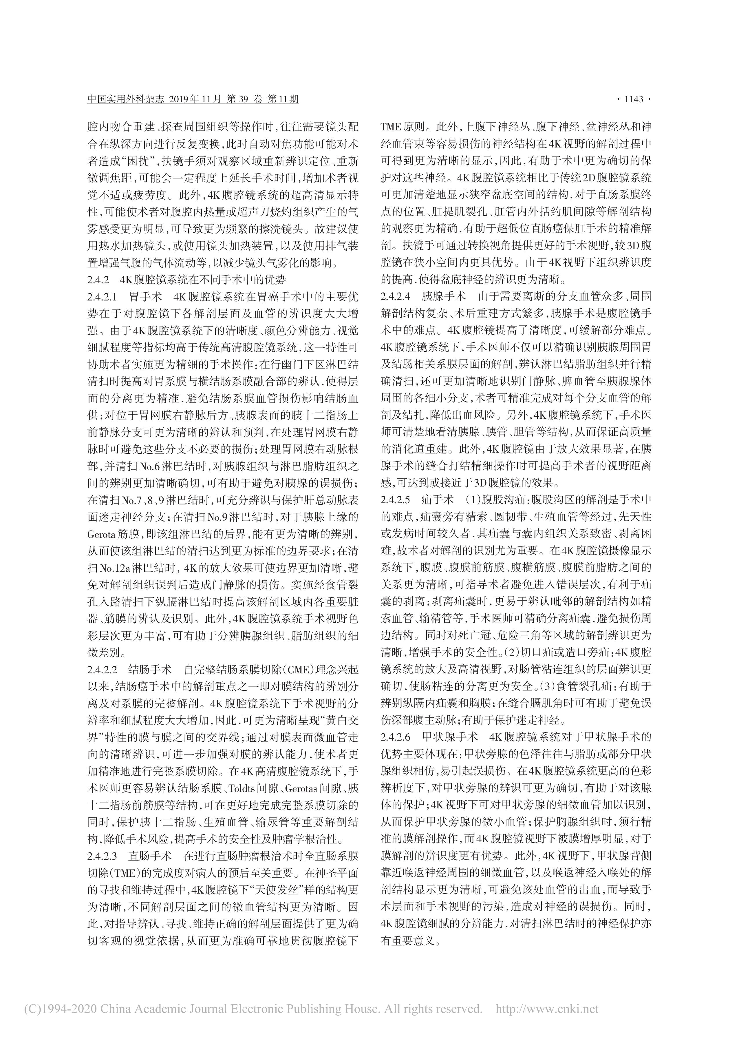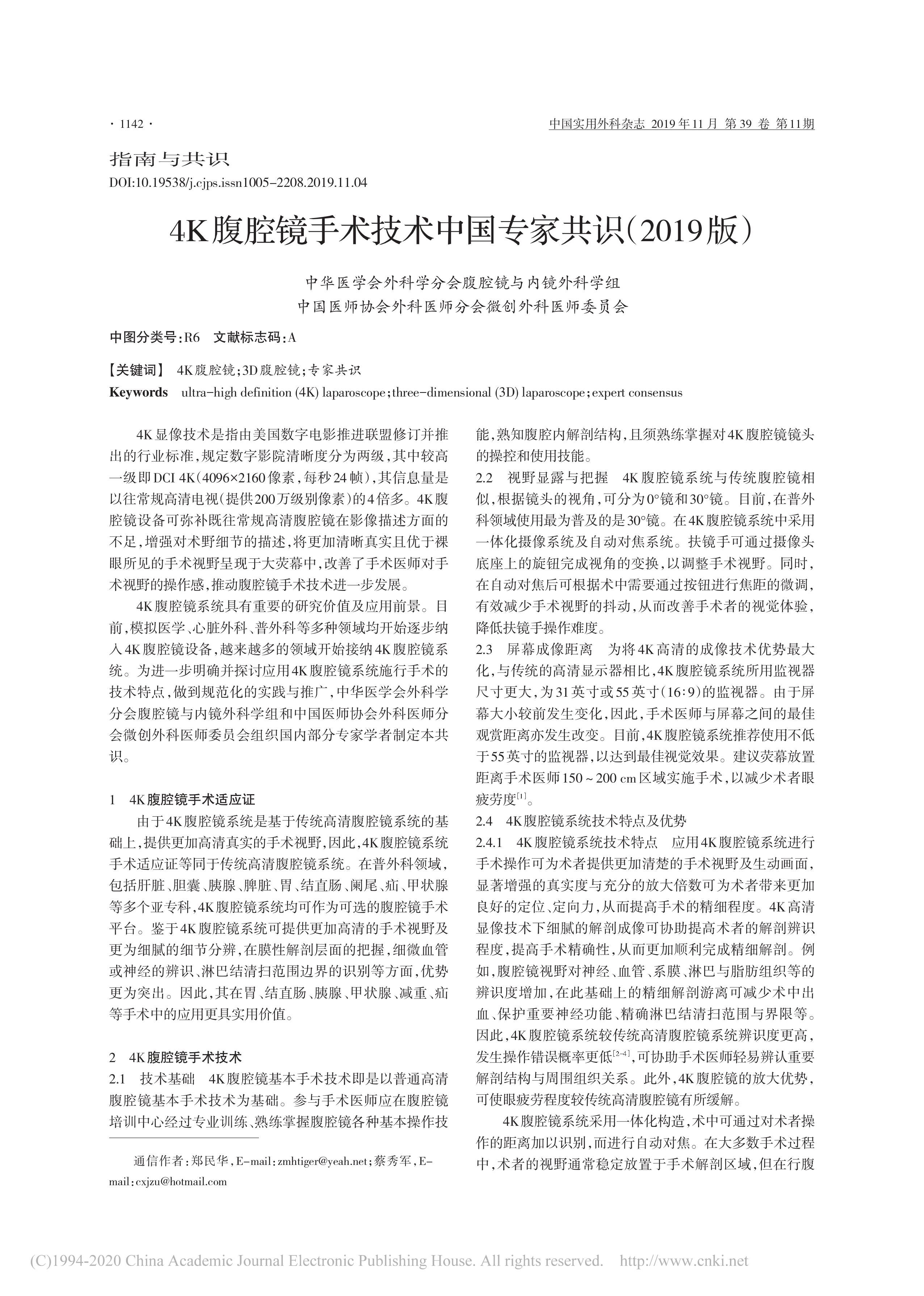 4K 腹腔鏡手術(shù)技術(shù)中國(guó)專(zhuān)家共識(shí)(2019 版)