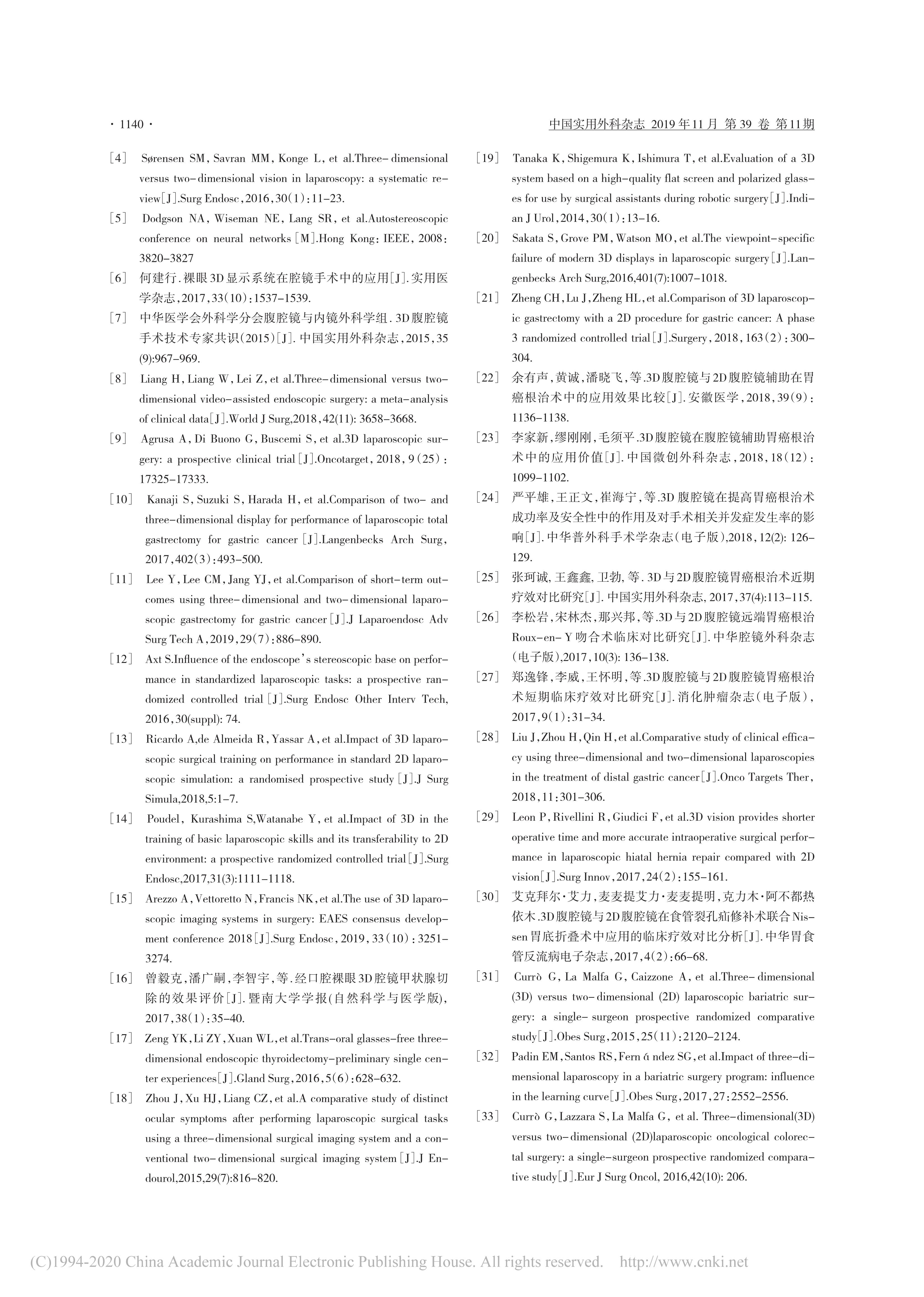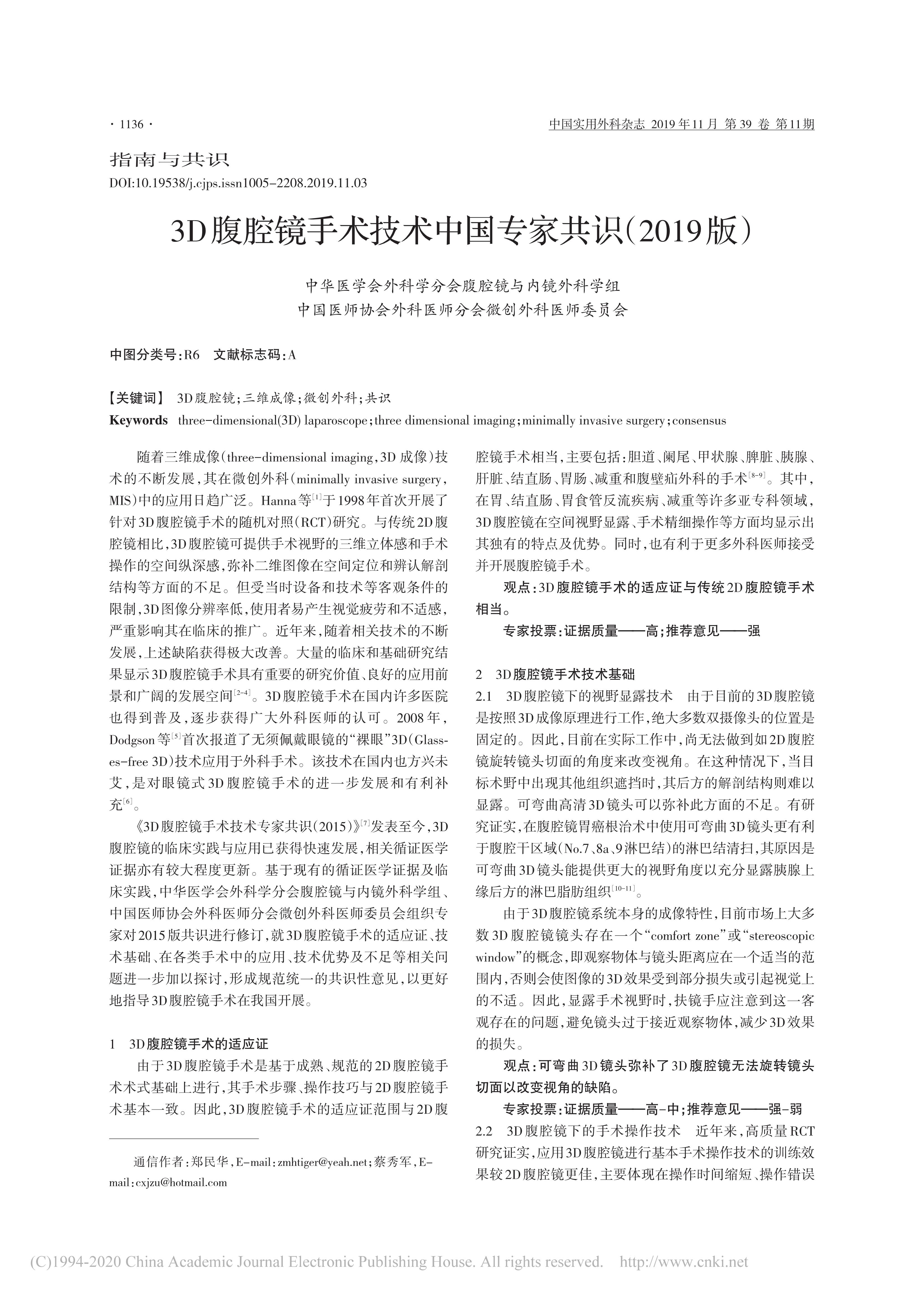 3D腹腔鏡手術(shù)技術(shù)中國(guó)專(zhuān)家共識(shí)(2019版)